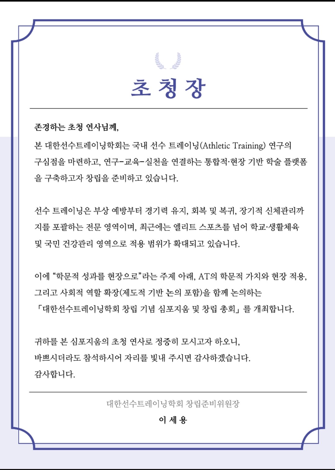 ■ 대한선수트레이닝학회 창립 기념 심포지엄 개요